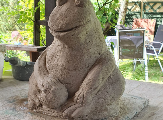„Beton macht glücklich“ ist die Erkenntnis des hessischen Betonkünstlers Sven Backstein, bei dem ich im Herbst 2014 einem Workshop zum Thema Betonskulpturen besuchte - und mich dort mit dem „Betonvirus“ infizierte! Allerdings kann ich mit diesem Material nur in meinem „Open -Air -Atelier“ (Garten) arbeiten, was die Schaffensphase auf die Schönwettermonate beschränkt. Beton erfordert ein zügiges Arbeiten und auf das Modellieren abgestimmte, spezielle Betone. Seit 2018 gebe ich meine Erfahrungen (und den Betonvirus) an Interessierte in Form von Workshops weiter.
